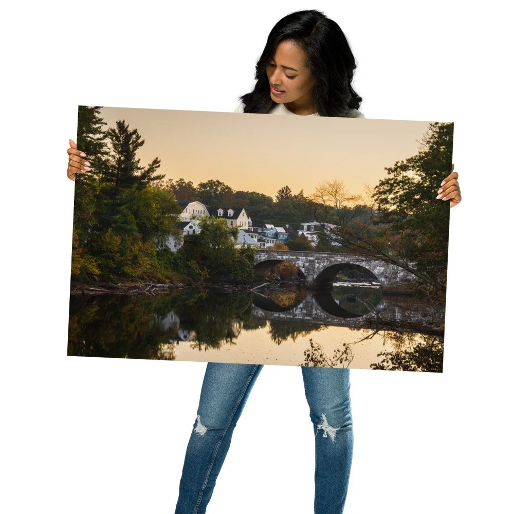 The image evokes the essence of early autumn along the coast or inland lakes of New England, where every sunrise brings a sense of peace and familiarity. With its balanced composition and golden tones, Morning at the Mooring adds a touch of serenity and classic New England beauty to any home or office.