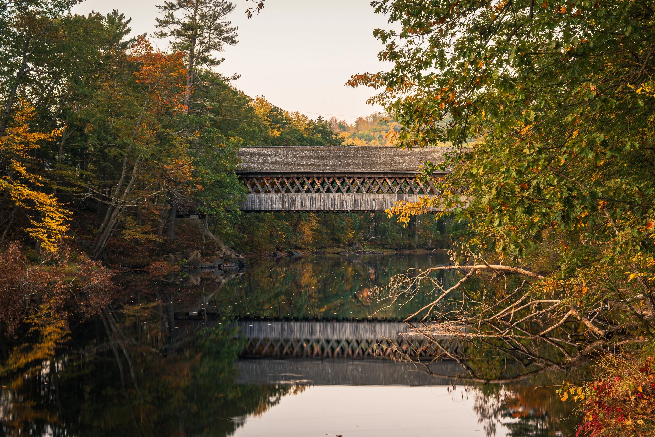 In Bridging of the Seasons, the charm of small-town New England meets the quiet elegance of transition. Captured in Henniker, New Hampshire, this serene scene showcases the town’s historic stone bridge framed by early autumn color and calm morning light.